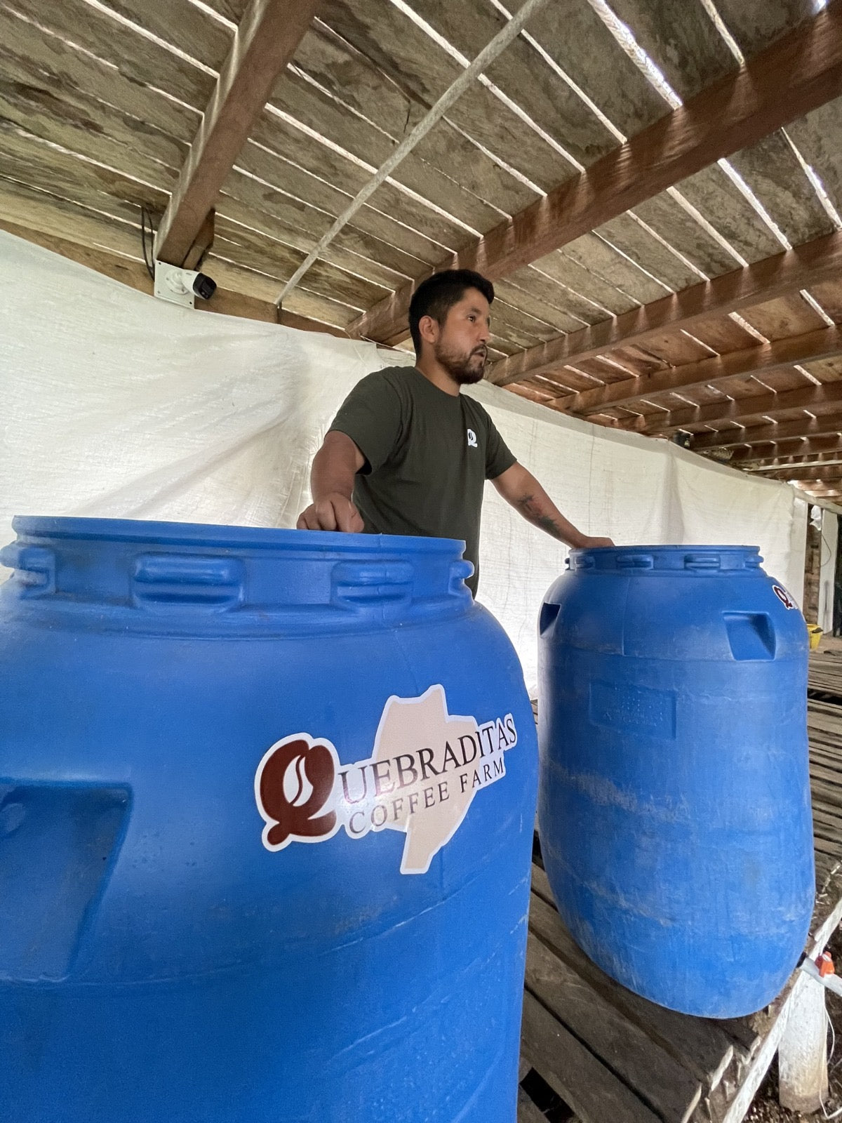 Fermentation takes place aerobically over 36 hours at temperatures below 25°C with specific yeast cultures. The coffee is then mechanically dried for 76 hours at an average temperature of 40°C before being stabilized in GrainPro bags for transport.